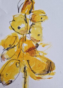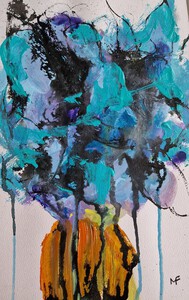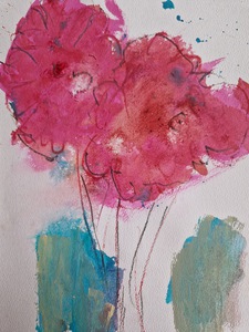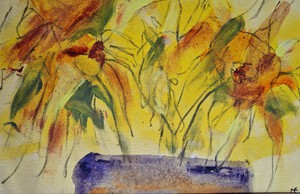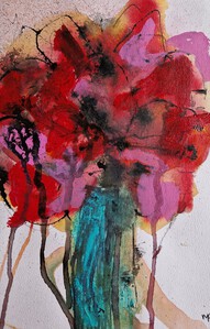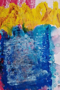 een aantal schilderingen, die ontstaan zijn vanuit monumentaal werken op klein formaat, kleurrijk en werken vanuit de natuur